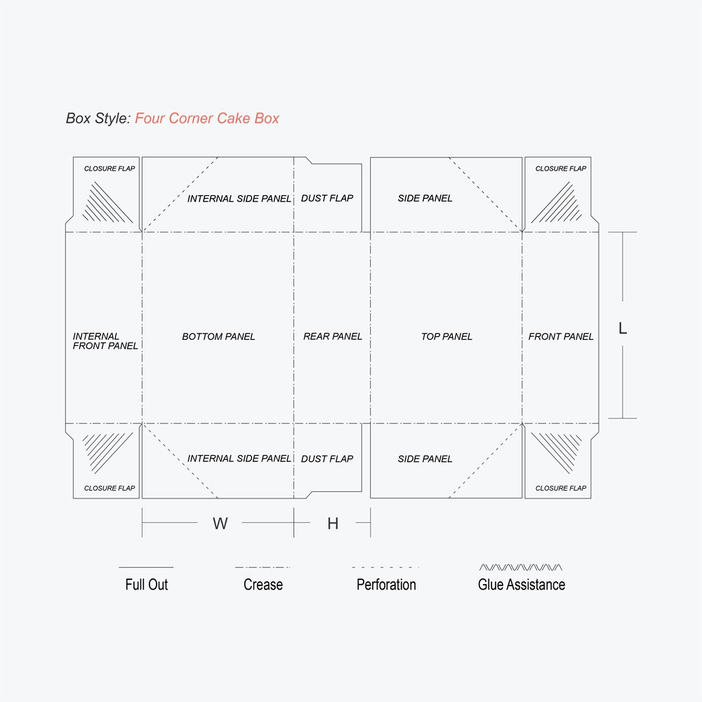 Customized four corner cake boxes are a surefire way to grab consumers’ attention and skyrocket your brick and mortar sales. With a design based on a fold and assemble style, four corner cake boxes are perfect for bakery products – popularly used in food packaging.